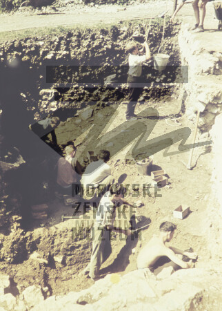 Hloubkové šachty v přední části výzkumu (jižní portál). Diapozitiv.