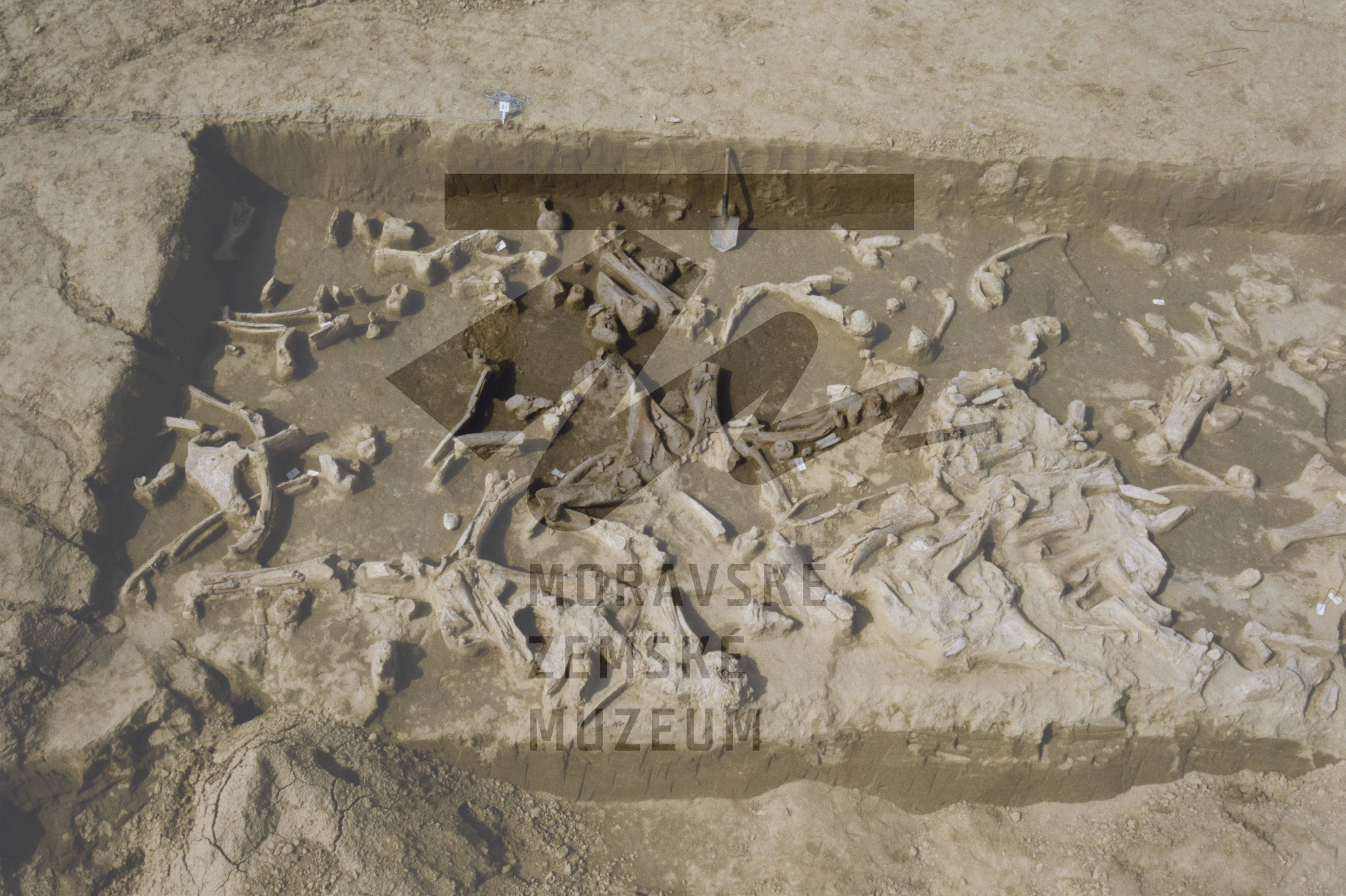 Koncentrace mamutích kostí v gravettienské vrstvě.