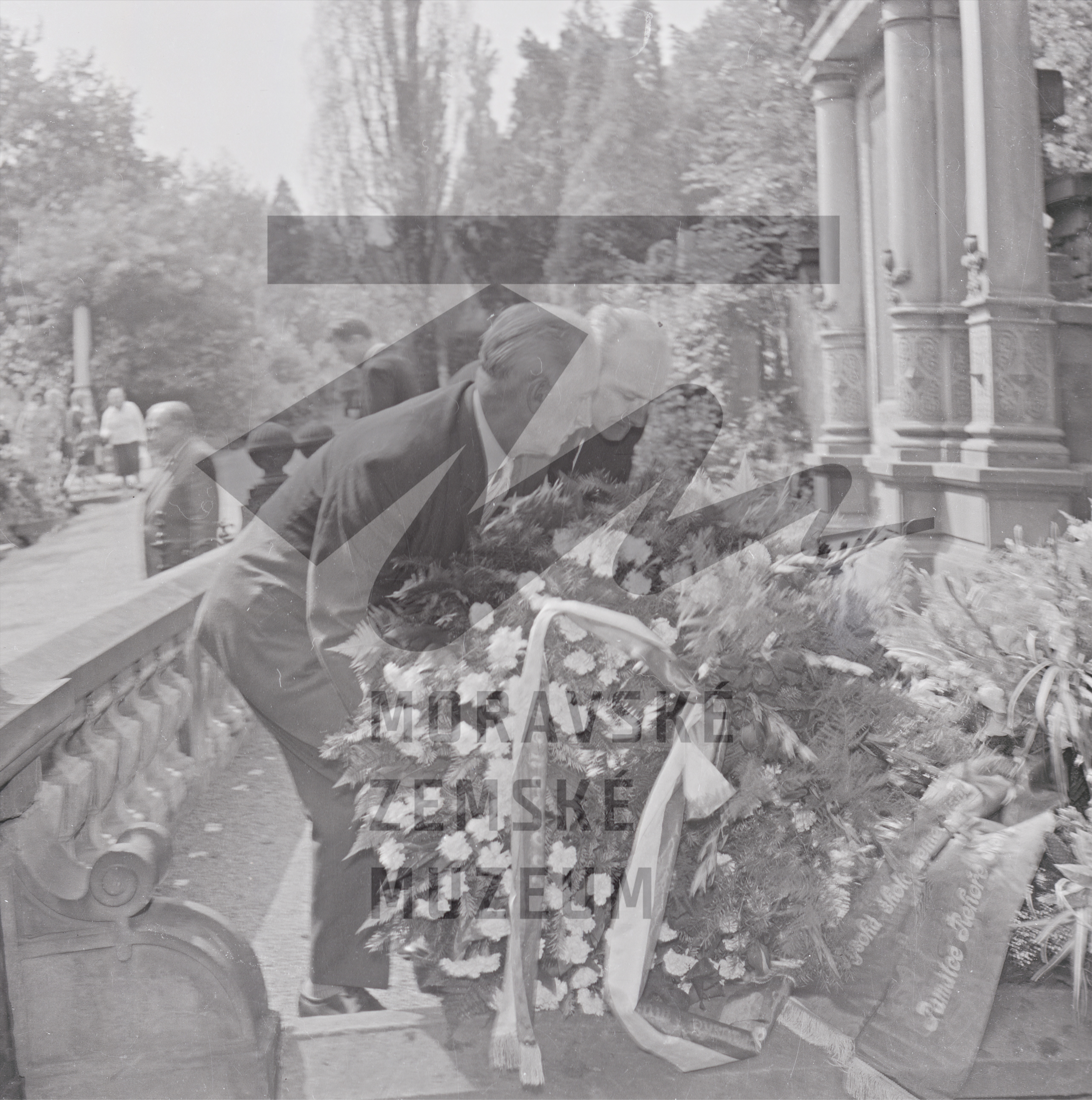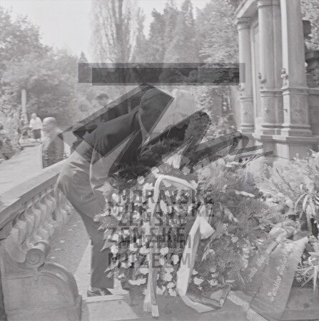 Mendelovo symposium 1965 v Brně – kladení věnce na Mendelův hrob.