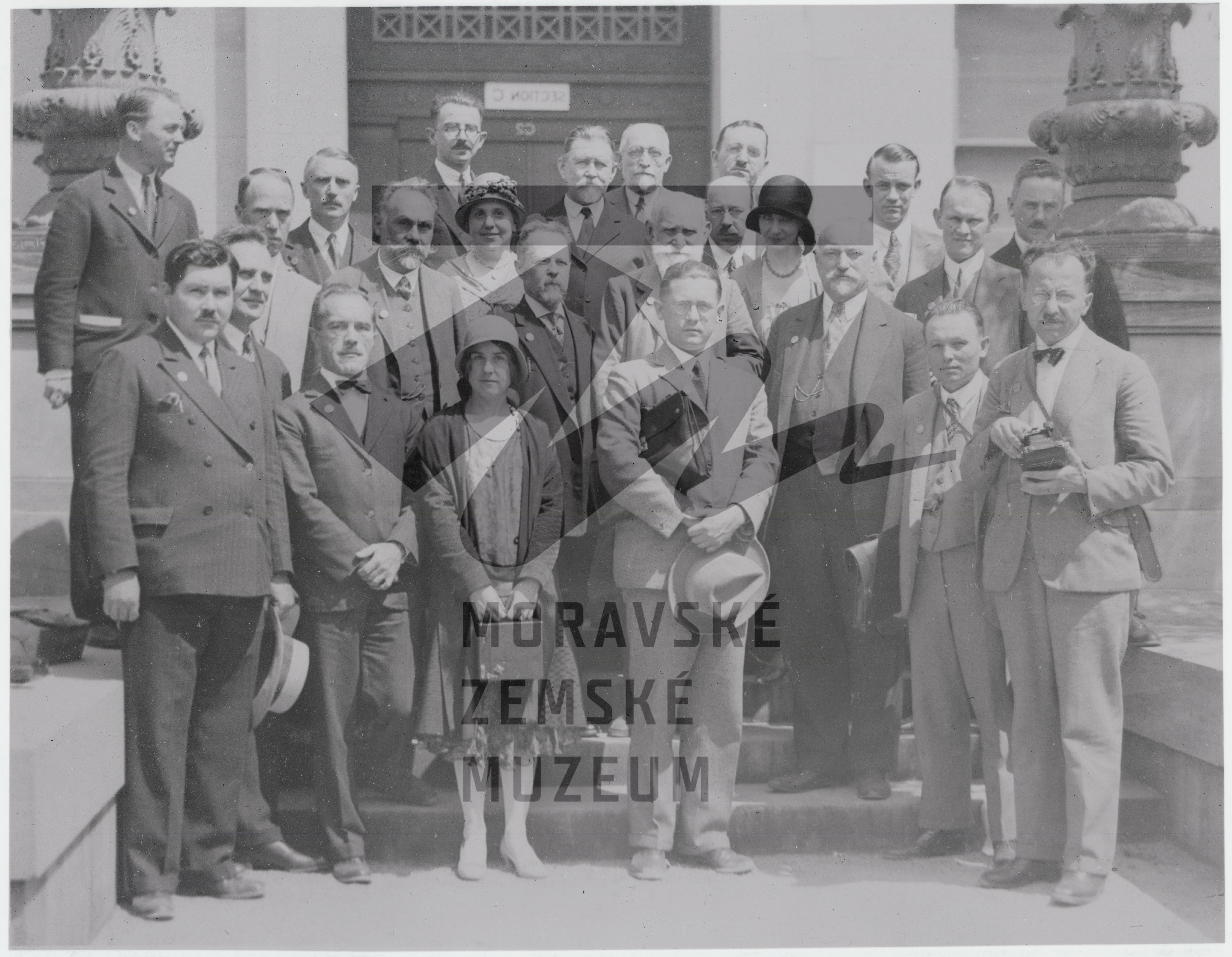 Účastníci přírodovědného kongresu v Bostonu, 30. léta 20 století. Ve spodní řadě uprostřed Jaroslav Kříženecký (1896-1964) , nad ním Ivan Petrovič Pavlov (1849-1936), po jejich levici Bohumil Němec (1873-1966).